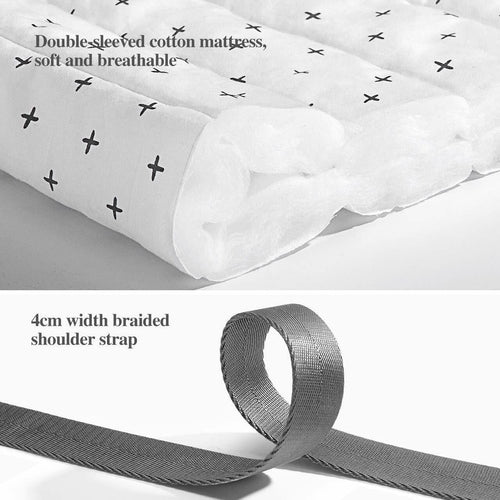 Its detachable cushion pad ensures comfort and safety with a skin-friendly, washable zipper cover. Crafted from 100% waterproof polyester, it maintains its shape with a sturdy bottom frame. It folds and unfolds easily with its lightweight design and comes with shoulder straps for a crossbody or shoulder bag style or a top handle to attach to a stroller. Our Portable Folding Baby Changing Bag lets you travel with ease, comfort, and style.
